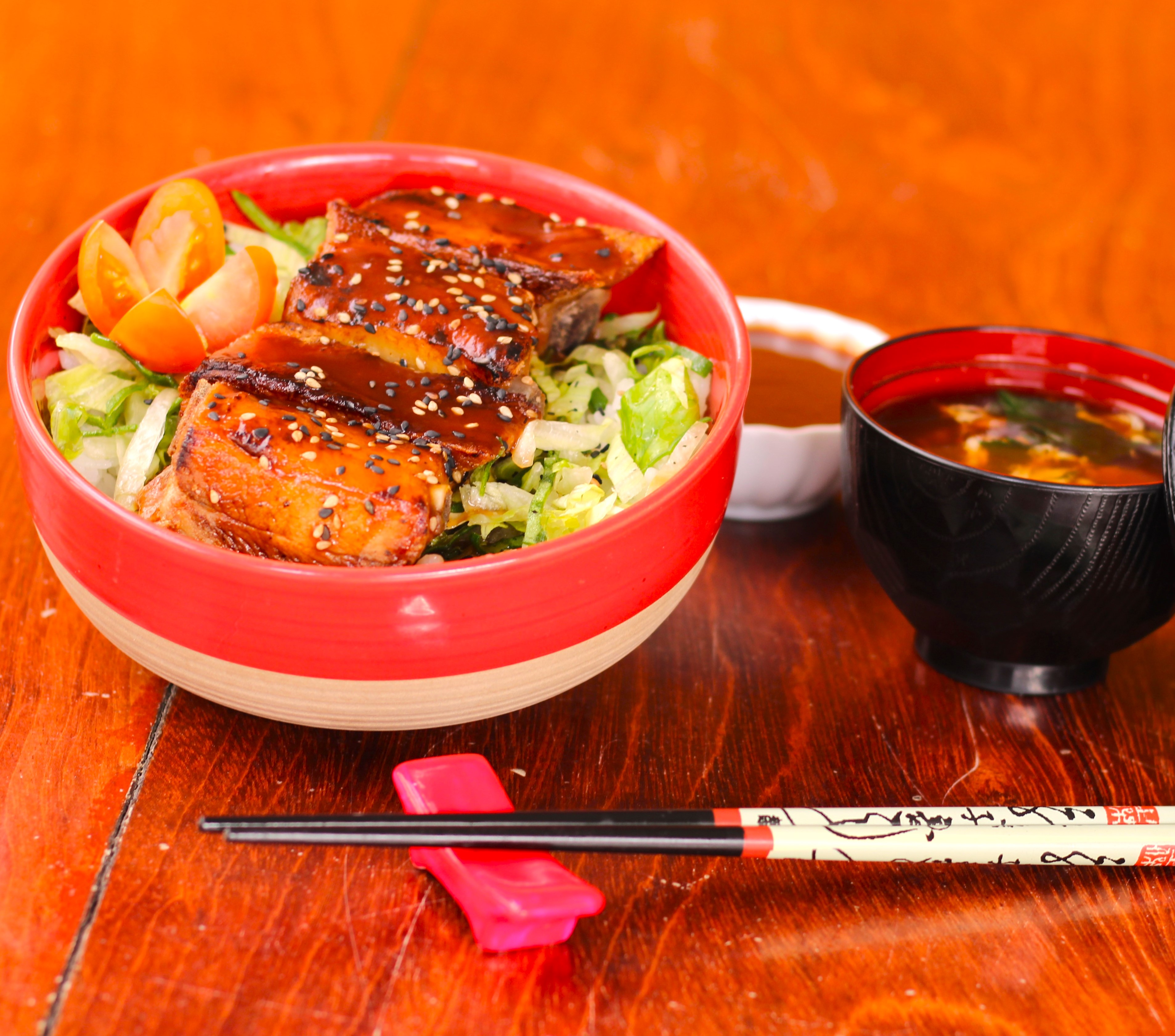 arroz cubierto con costillas ..