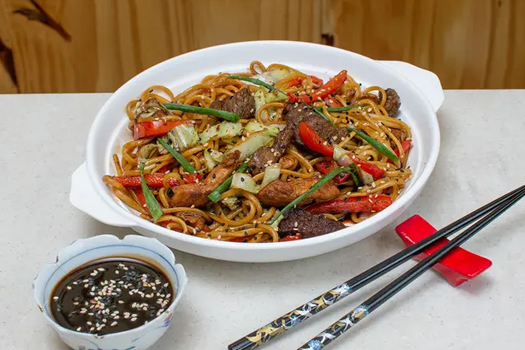 Tallarin salteado al wok con ..